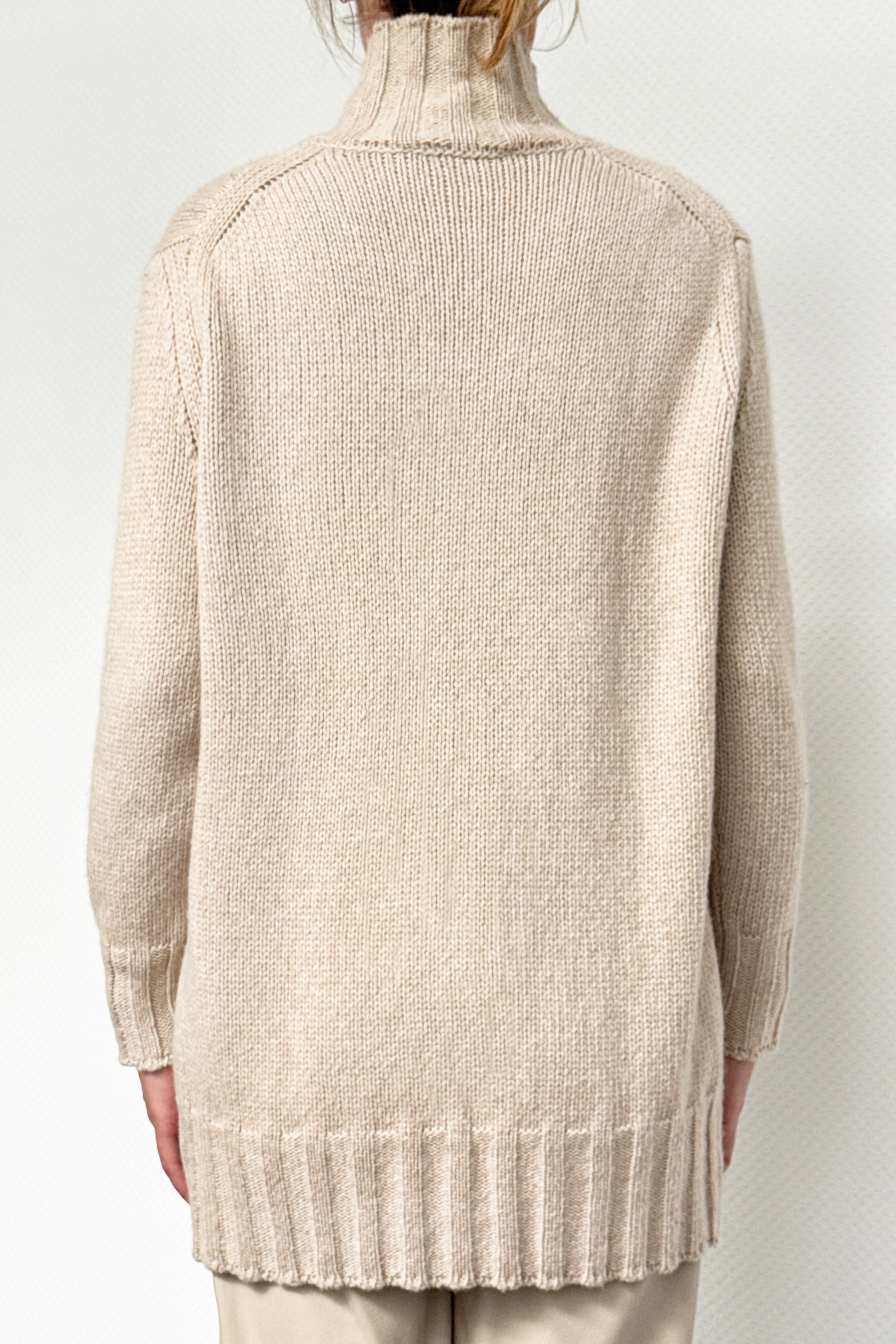 Der Basilia Kaschmirrollkragenpullover Feather Beige ist ein modernes Statement luxuriösen Komforts.