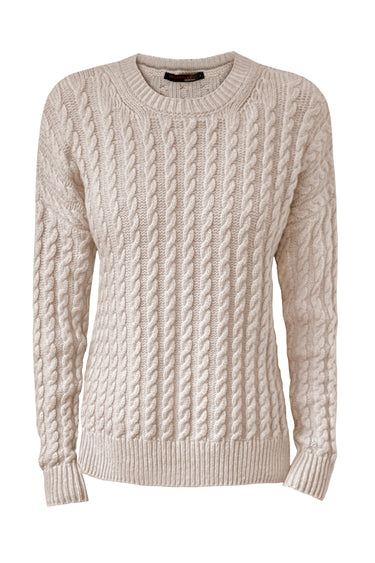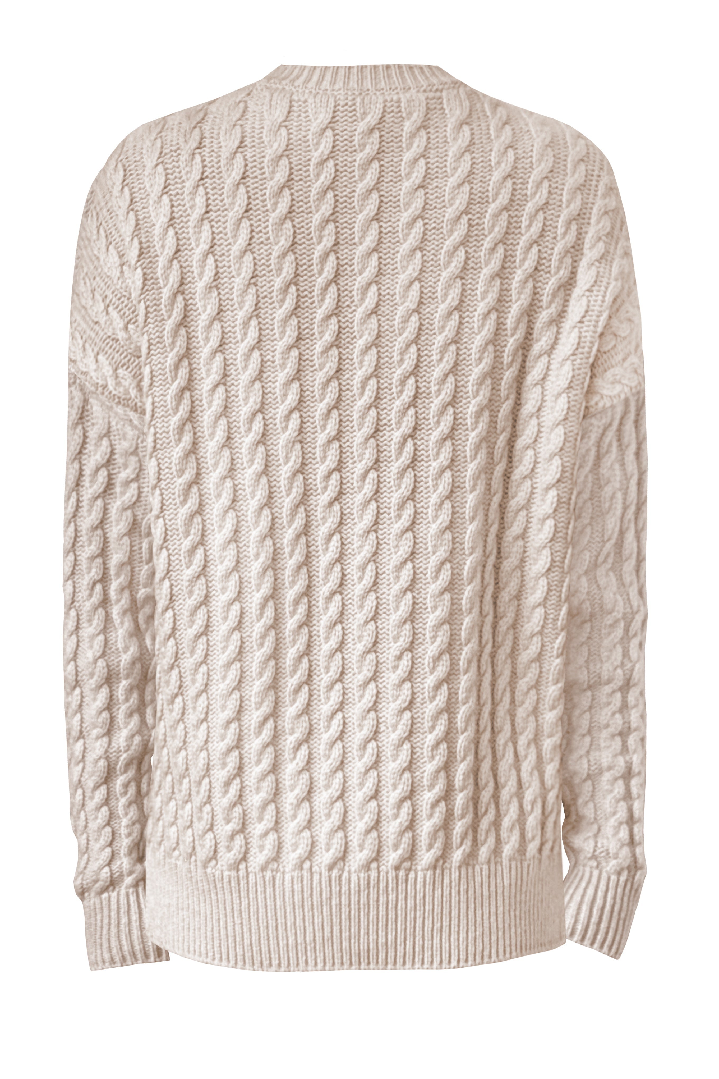 Feiner Zopfstrick und dezente Rippabschlüsse verleihen Struktur und elegante Tiefe.
