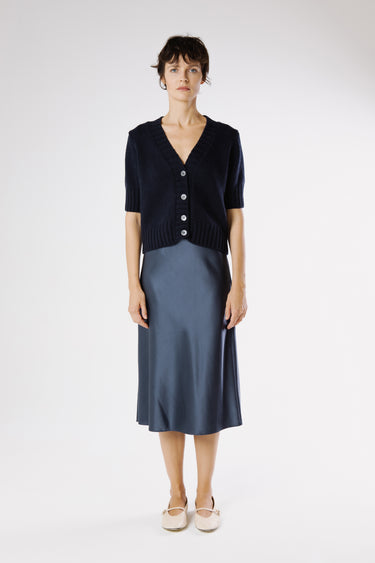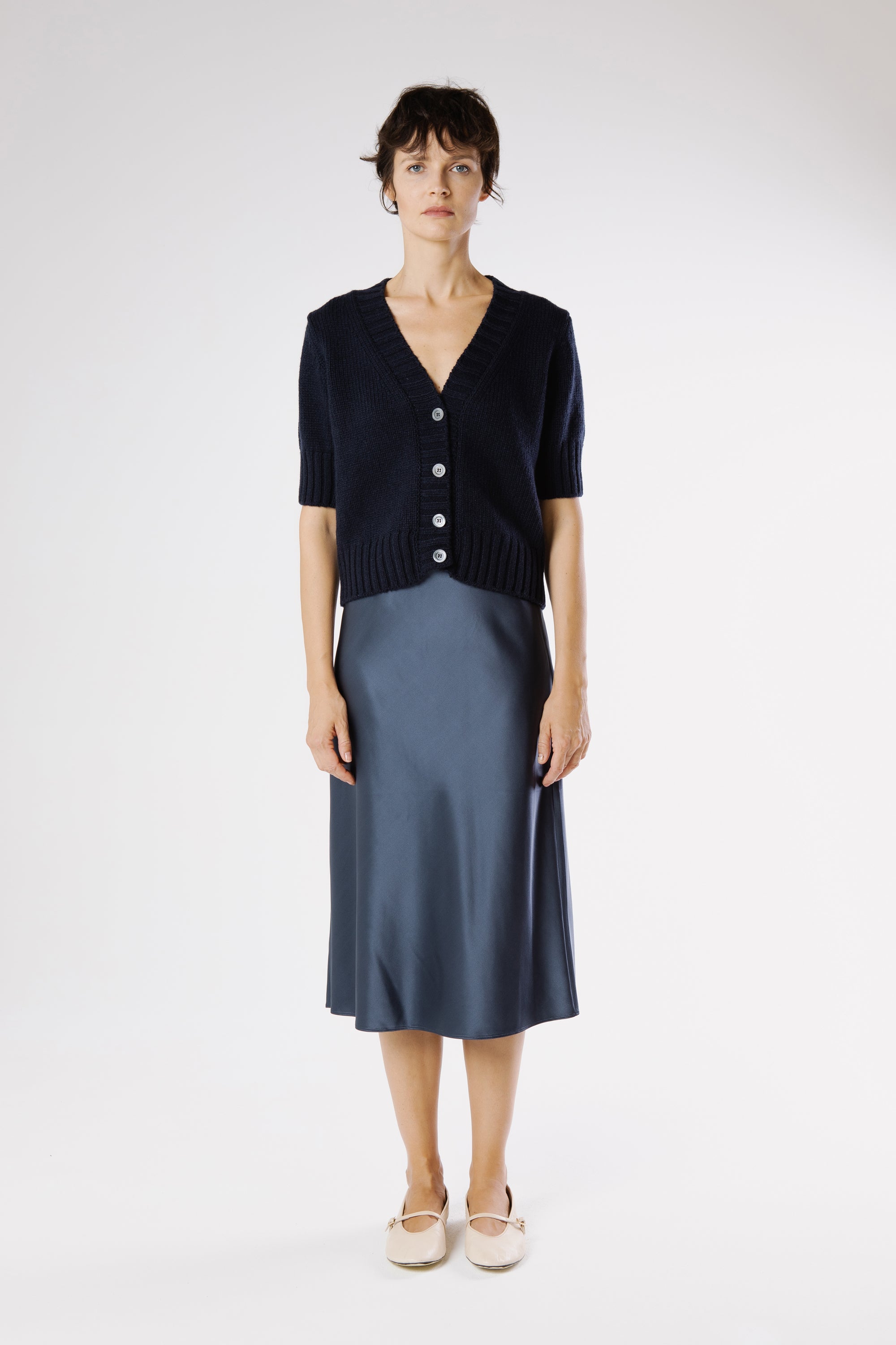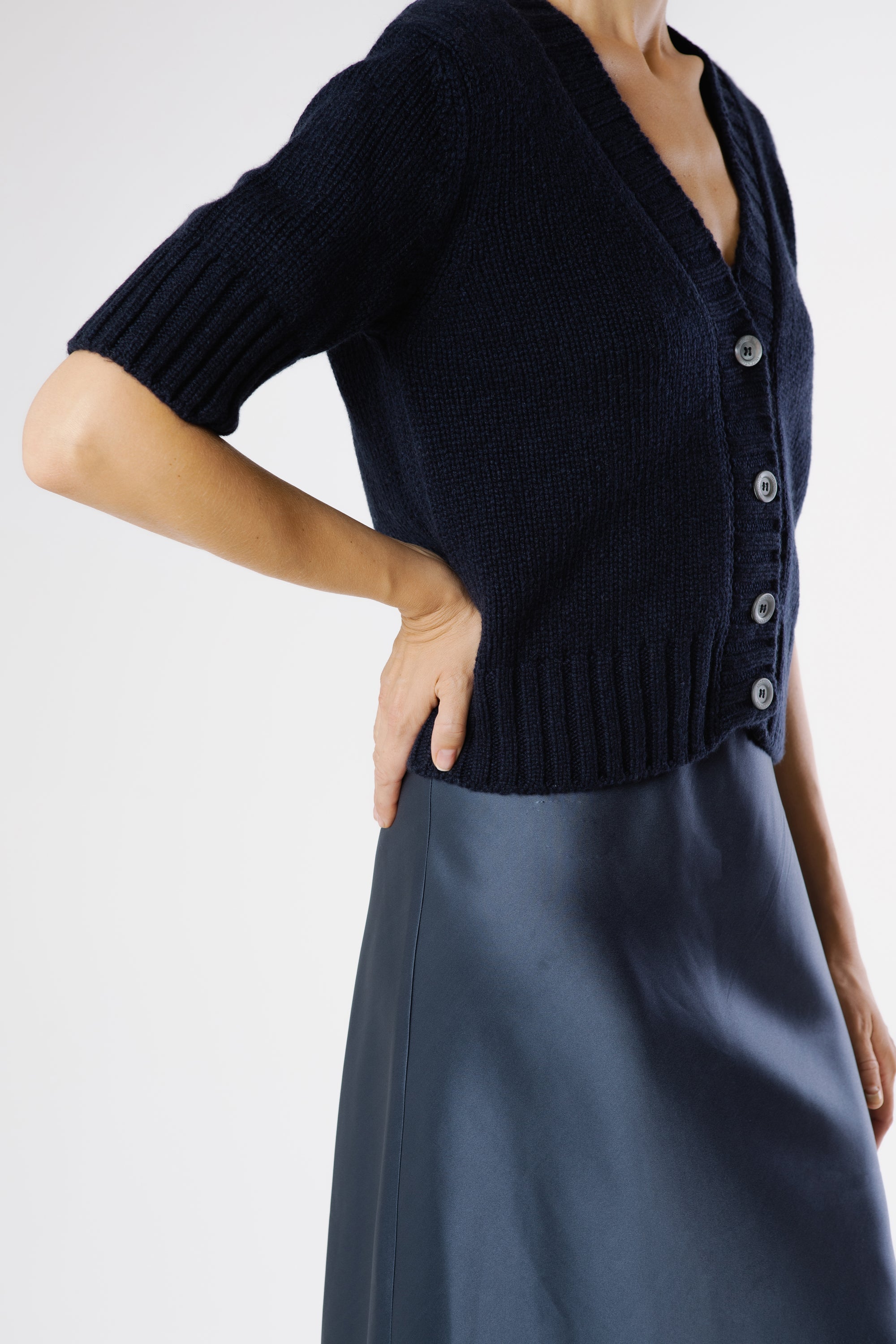 Der Artemisa Cashmere Cardigan in Beluga wird aus reinem italienischem Kaschmir gefertigt und zeichnet sich durch seine sanft strukturierte Silhouette sowie den eleganten V-Ausschnitt aus. Der tiefe Beluga-Farbton unterstreicht seine zeitlose Eleganz, während gerippte Details und Ton-in-Ton-Knöpfe dem Design eine dezente Raffinesse verleihen.