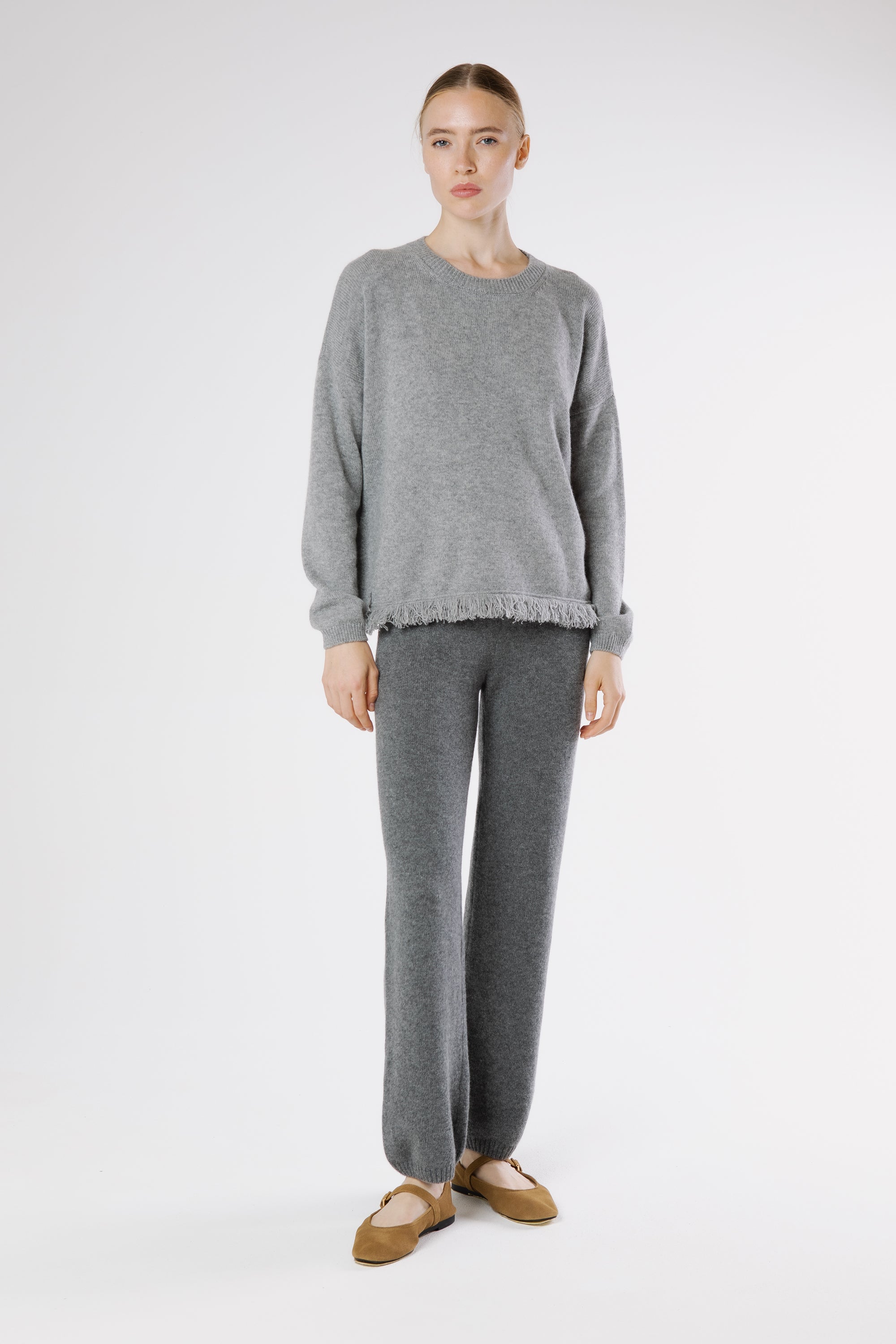The Naja Cashmere Trousers in Slate are crafted from ultra-soft pure cashmere, offering a relaxed straight-leg silhouette with a comfortable elasticated cuff. Their refined slate-grey tone makes them a timeless essential for elevated everyday comfort.